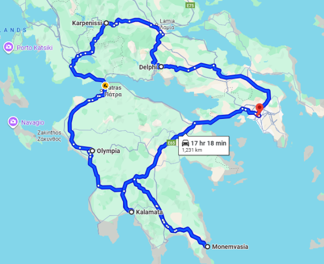 Monemvasia to Athens